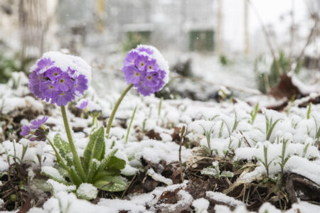 Vårblommor sticker försiktigt upp ur jorden.