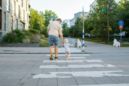Bildbyline med barnhänder från en förskola i bakgrunden.