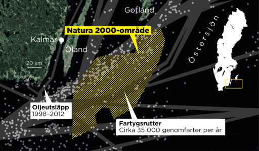 Tung fartygstrafik genom känsligt naturområde