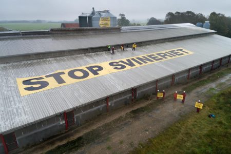 Greenpeace protesterade mot grisgårdar