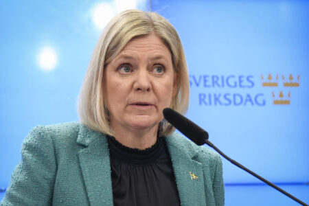 Magdalena Andersson i förgrunden och i bakgrunden Muharrem Demirok.